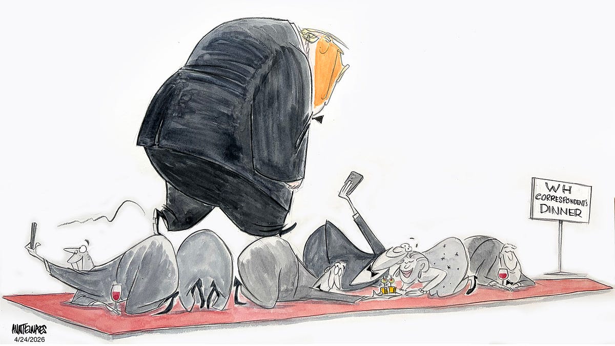 Cartoonist Ann Telnaes publishes an essay criticizing this year’s White House Correspondents’ Dinner amid controversy